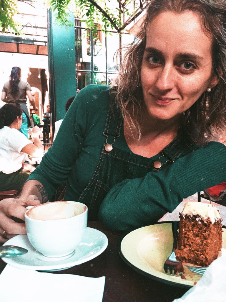 Pedimos dos capuchinos un sándwiche caliente y una carrot cake, nos miramos abajo de la enredadera donde algunos rayos de sol se infiltraban. Seguimos en silencio, disfrute del café sabiendo que una lectura me esperaba, una operación me esperaba y la tarde estaba hermosa.